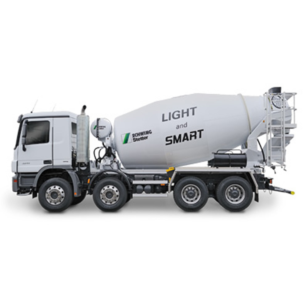 Gracias a la optimización de las formas geométricas del tambor, de las espirales de mezcla y de los accesorios se ha podido “ganar unos cuantos kilos”. En combinación con un chasis ligero de 4 ejes se pueden cargar hasta 8 m3 de hormigón.